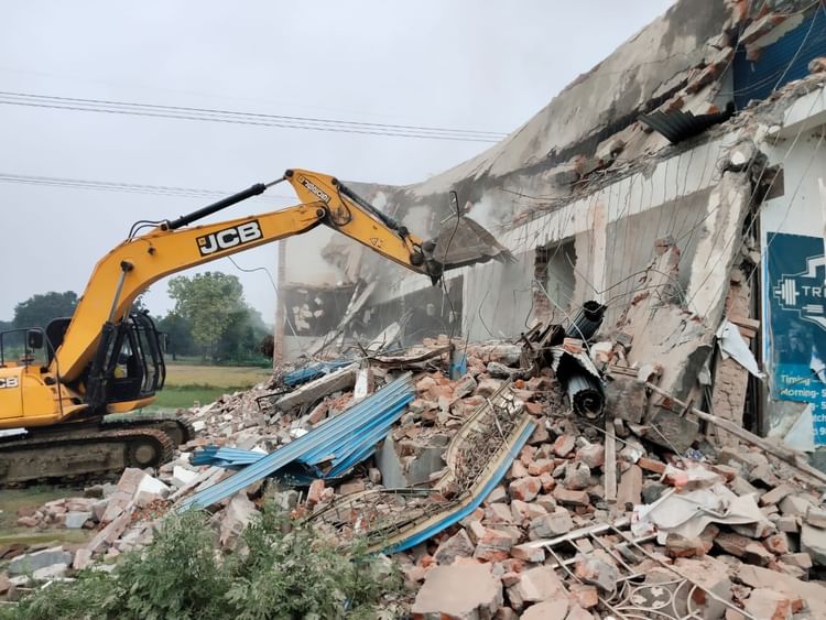 Article Gang rape accused Moeed Khan: सामूहिक दुष्कर्म के आरोपी समाजवादी पार्टी के नगर अध्यक्ष मोईद खान के शॉपिंग कॉम्प्लेक्स पर बुलडोजर कार्रवाई जारी है। दो मंजिला भवन के पिछले हिस्से को पोकलैंड जेसीबी की मदद से ध्वस्त किया जा रहा है।